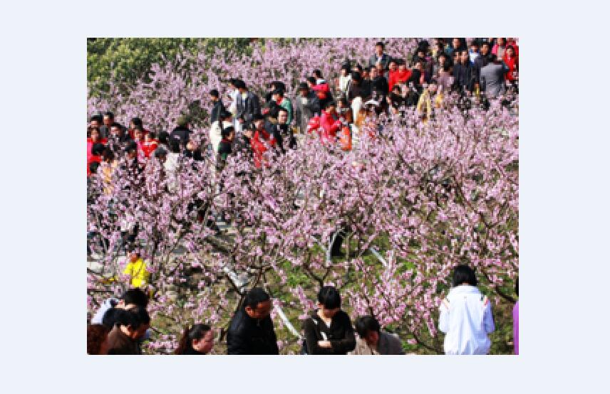 赏桃花 作者:李丽莎 蜀都三月桃花开, 群蜂蝶舞引人来。 人流阻道无处去, 人面桃花笑开怀。 |