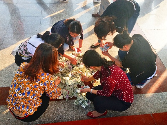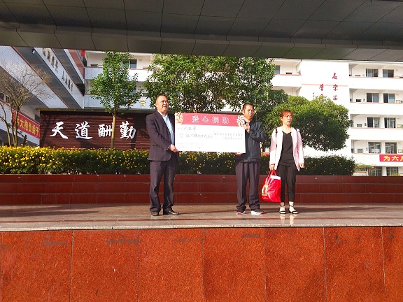 新科高中全体师生现场为代亚萍同学捐款共计64820元,这“沉甸甸”的爱心捐款已由学校领导当场交到代亚萍同学的父母手中。代亚萍同学的父母向所有关心和捐款的师生深深鞠躬,表示了衷心的感谢。