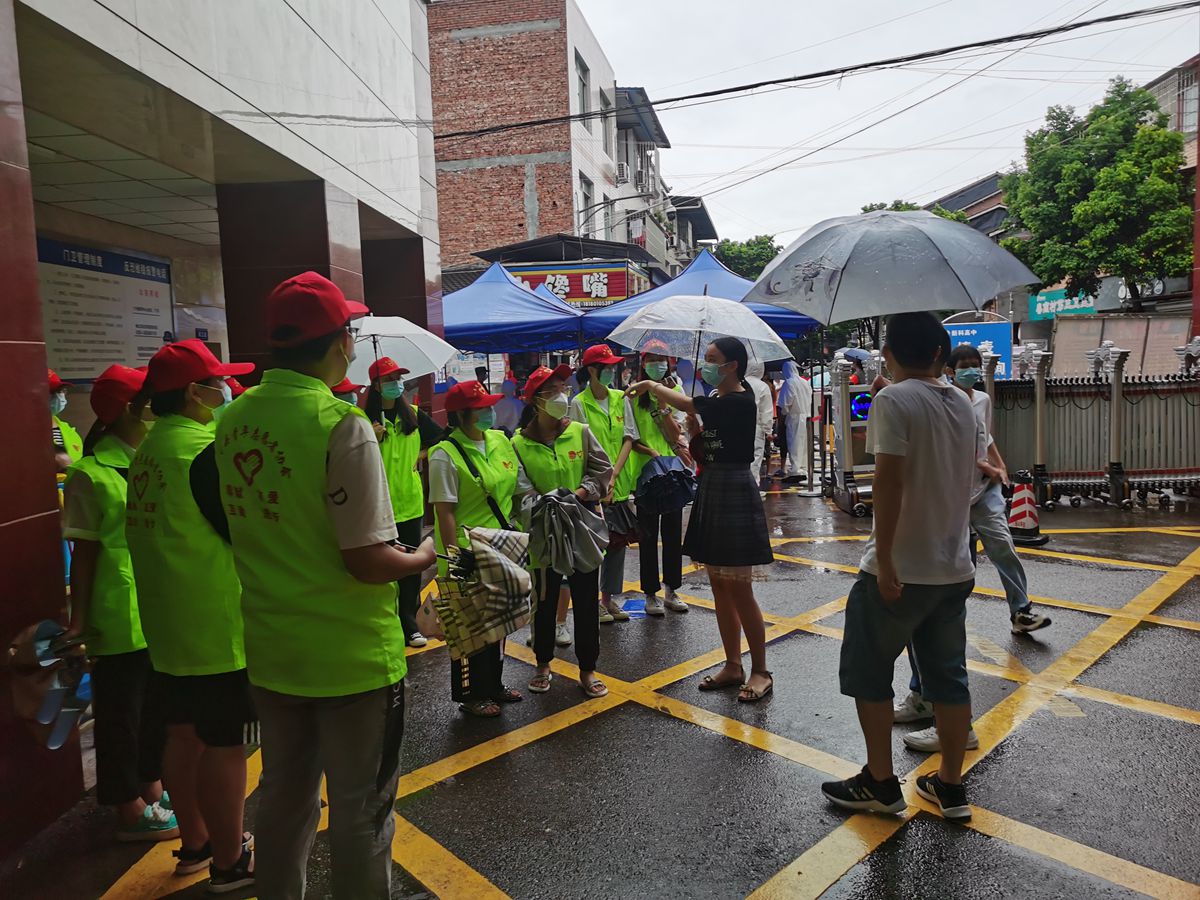 各级领导高度重视新科高中核酸检测采样点工作,仁寿县委副书记唐余、县教体局局长宋全富、县人民政府教育督导室主任魏永安、县疾控中心主任张建雄、县卫健局局长吴垚、副局长曾艳东等领导先后冒雨来到新科检查指导核酸检测采样工作;县公安局怀仁派出所、交警大队、巡警大队、城北学区、蜂蜜社区都派出人员全程参与新科高中核酸检测采样点服务、保障工作。