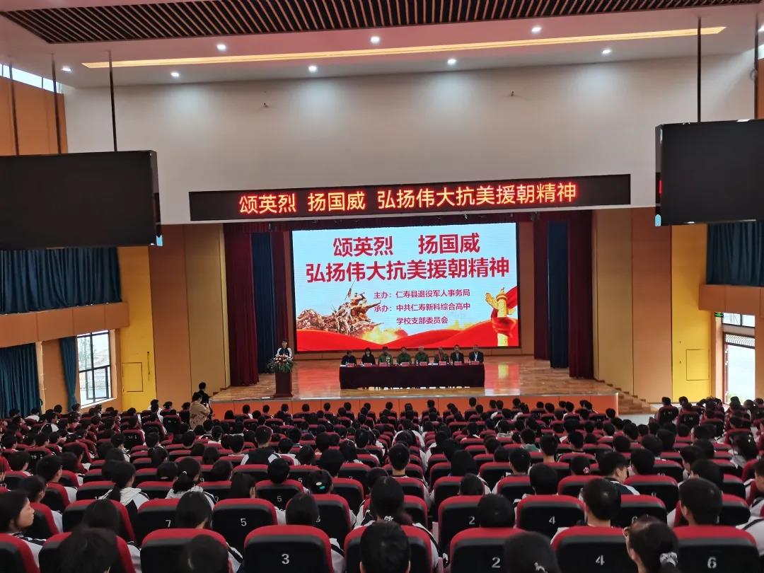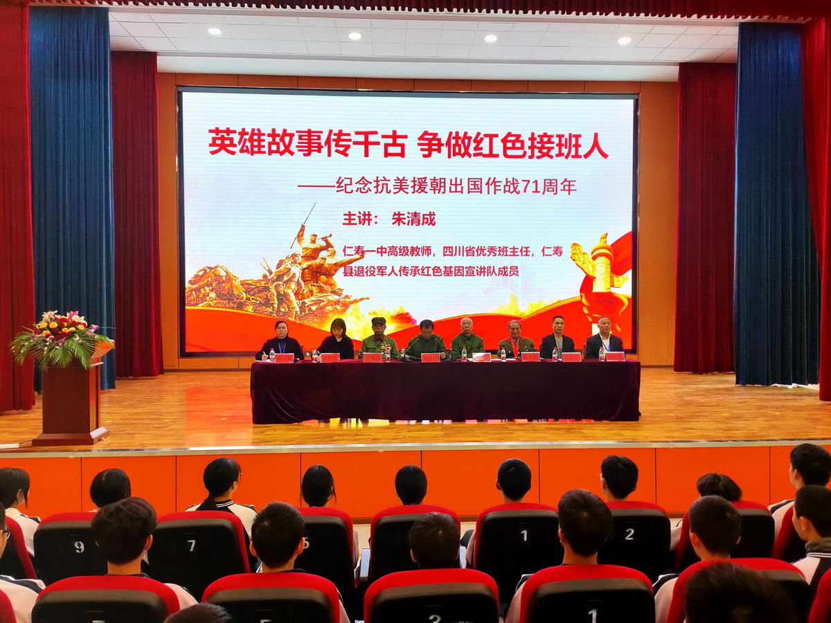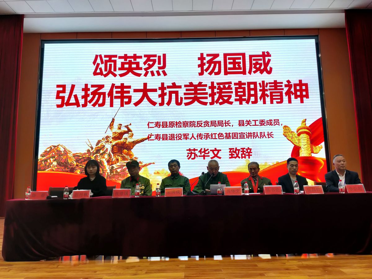 2021年10月23日下午,仁寿县退役军人橄榄绿志愿服务队“颂英烈、扬国威、弘扬伟大抗美援朝精神”宣讲活动在仁寿新科高中学术报告厅举行。