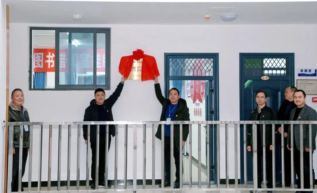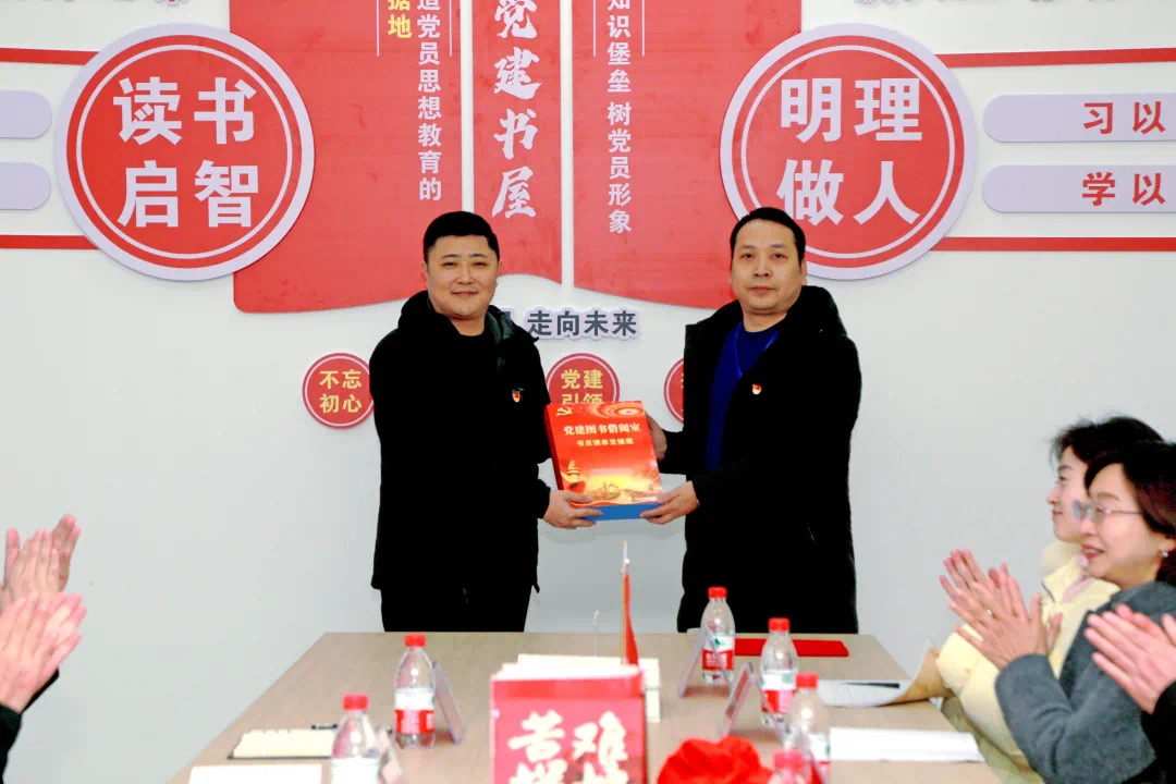潘相男行长和新科学校罗圣书记为党建图书借阅室挂牌仪式。