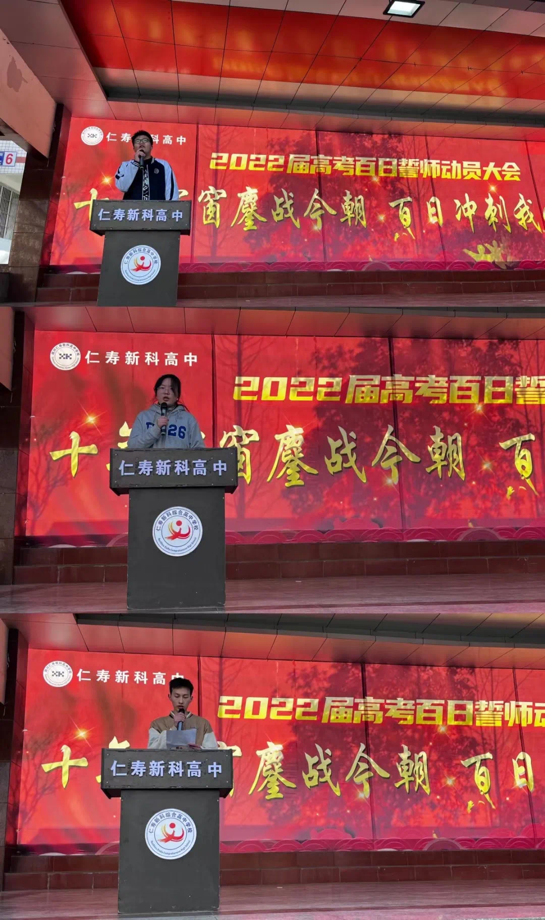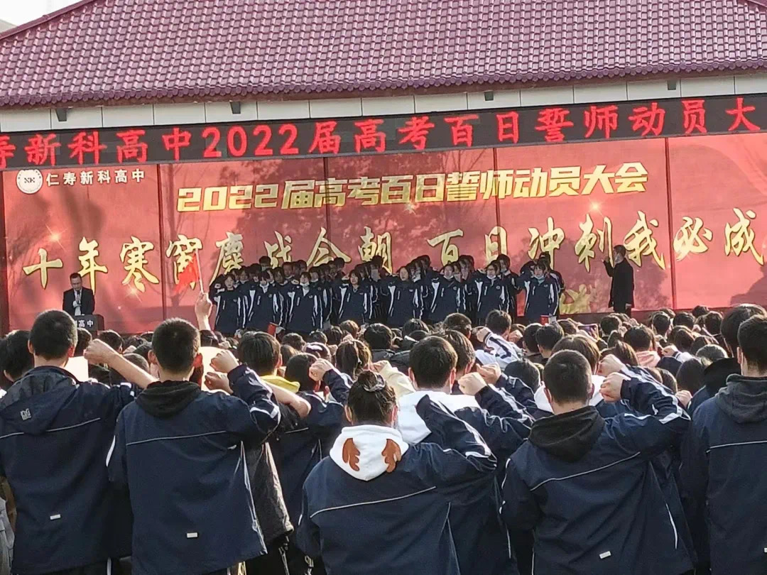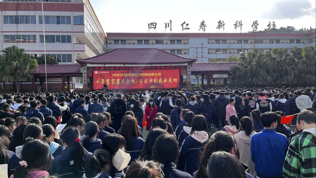 万物逢春皆复苏,天道酬勤助不凡。2022年3月1日,仁寿新科高中隆重举行高考百日冲刺誓师大会。学校党支部书记、执行校长罗圣、教务处主任杨玉贵等领导出席了大会,2022届全体师生参加活动,为高三学子最后百天冲刺吹响号角,为决战高考呐喊助威!