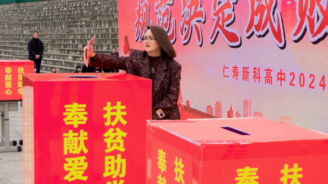 在新科教育集团董事长、新科高中校长李智慧同志的带领下,全校师生积极响应,纷纷上台捐赠,表达自己的爱心。