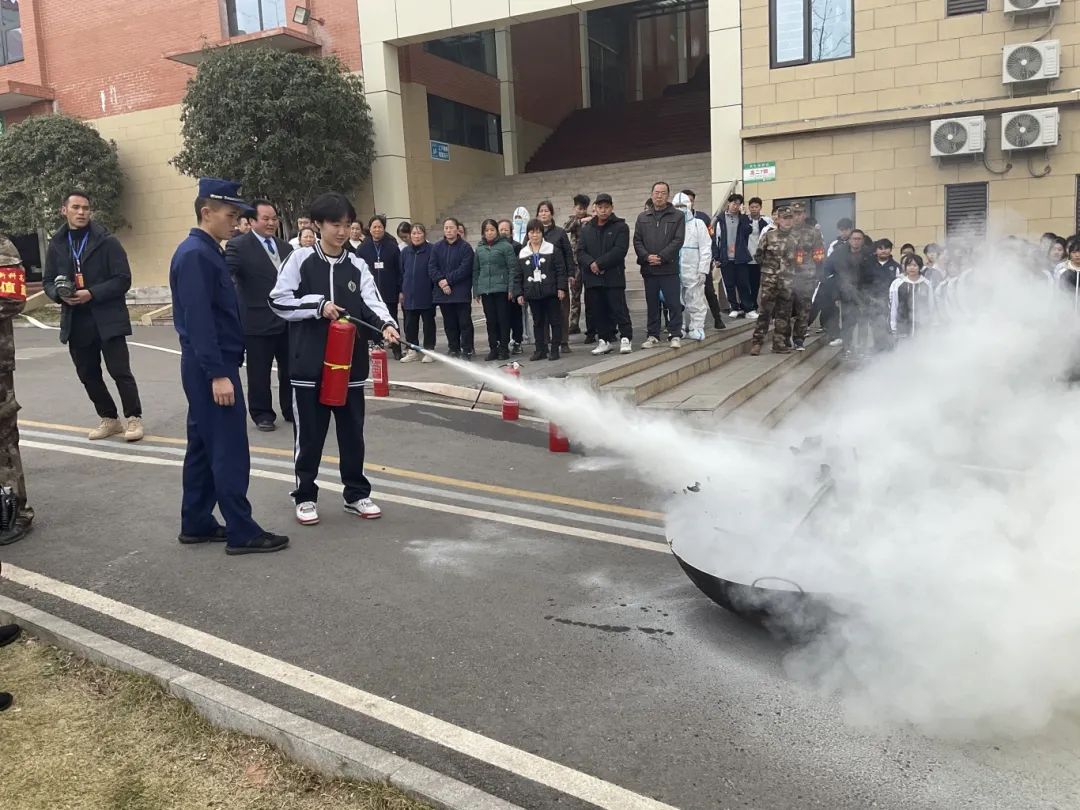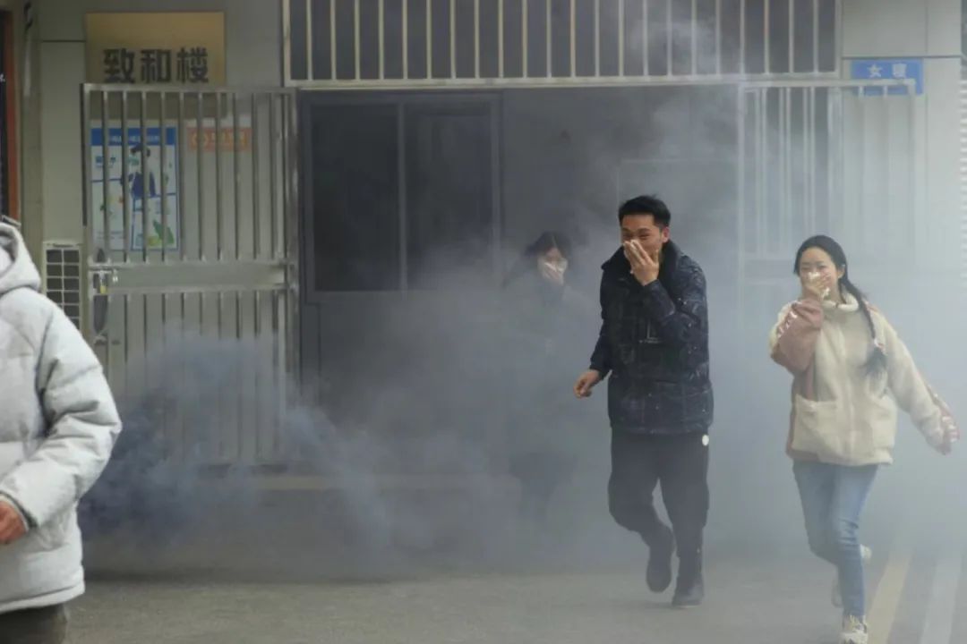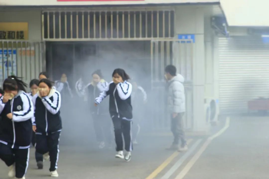 本次演练是以模拟学生公寓突发火情,学校立即启动应急处置预案,应急救援小组火速救援,及时将师生疏散至安全区域。