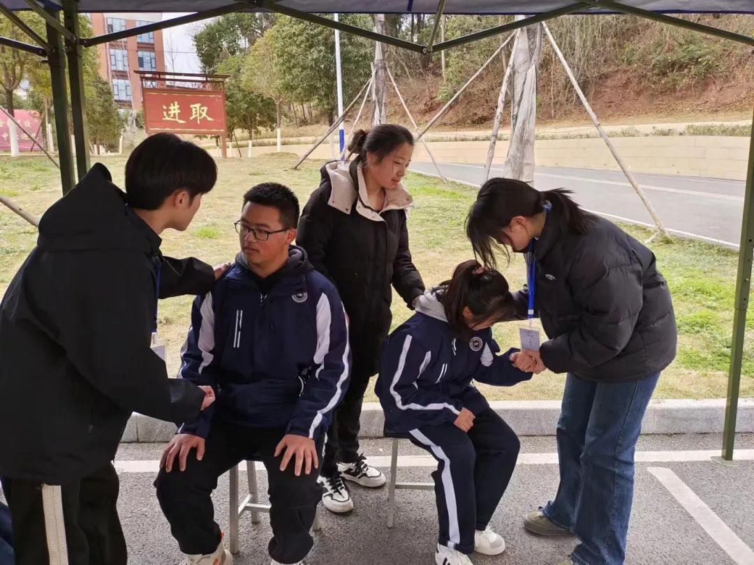 心理健康老师对受惊吓的学生进行心理辅导,缓解心理压力、恢复心理平静。