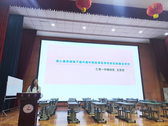 仁寿一中南王芳芳老师就《核心素养视域下提升高中思政课有效性的实施路径研究》进行分享。