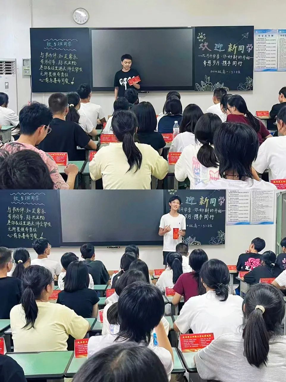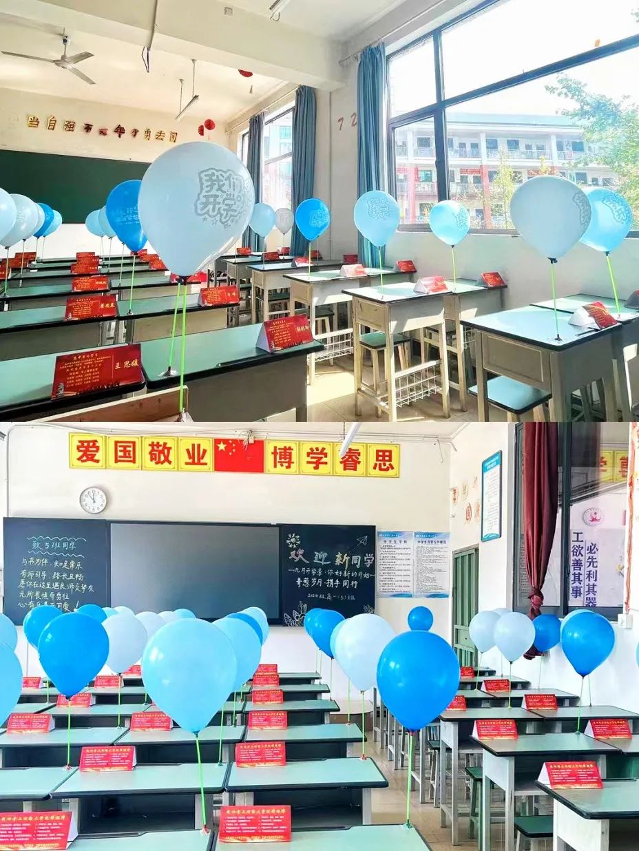整齐的桌椅,干净明亮的教室,激情满满的班主任带着热情与期待,欢迎同学们步入新学期。