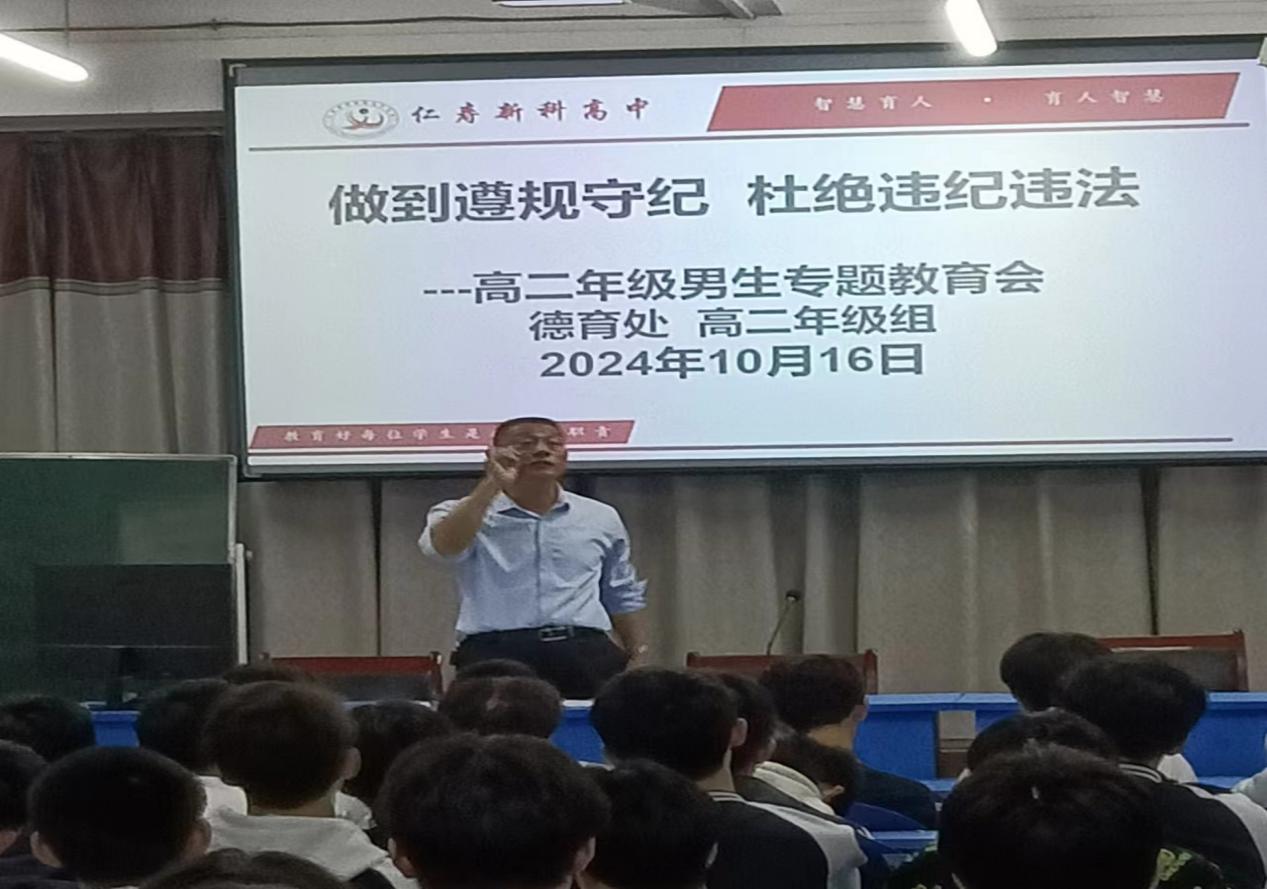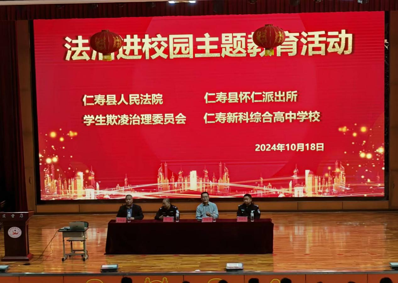 为增强学生法治观念,增强法律意识,提升自我保护能力,2024年10月,仁寿新科高中多措并举,对学生进行法治教育。