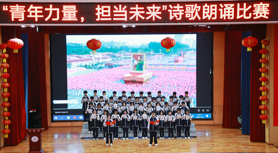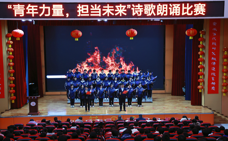 为纪念“一二·九”运动89周年,引导广大青年学生树立远大理想、厚植爱国情怀,提高思想道德和文化修养水平,增强民族自信、文化自信和民族自豪感,激励广大师生立足教育教学实践,建功立业,报效祖国。2024年12月9日,仁寿新科高中在学术厅举行了以“青春力量,担当未来”为主题的诗歌朗诵比赛。