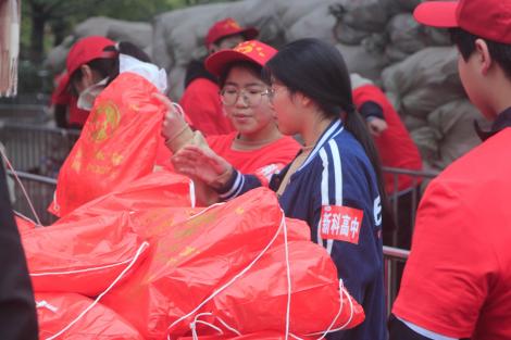 早晨5:00,天未亮,整个城市依然显得格外宁静,新科高中860余名志愿者在老师的带领下从学校乘车出发,5:30到达仁马赛场,开始忙碌的准备工作。