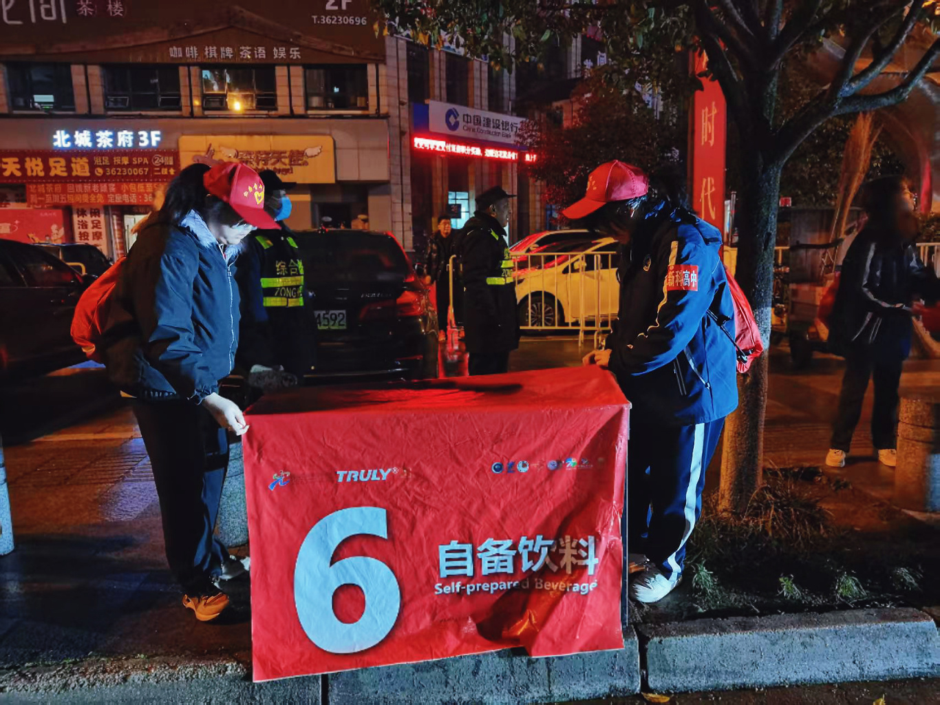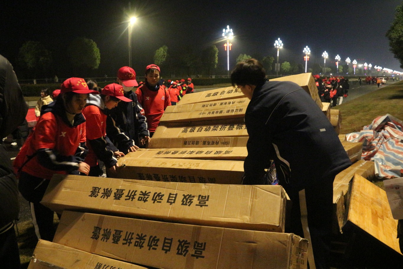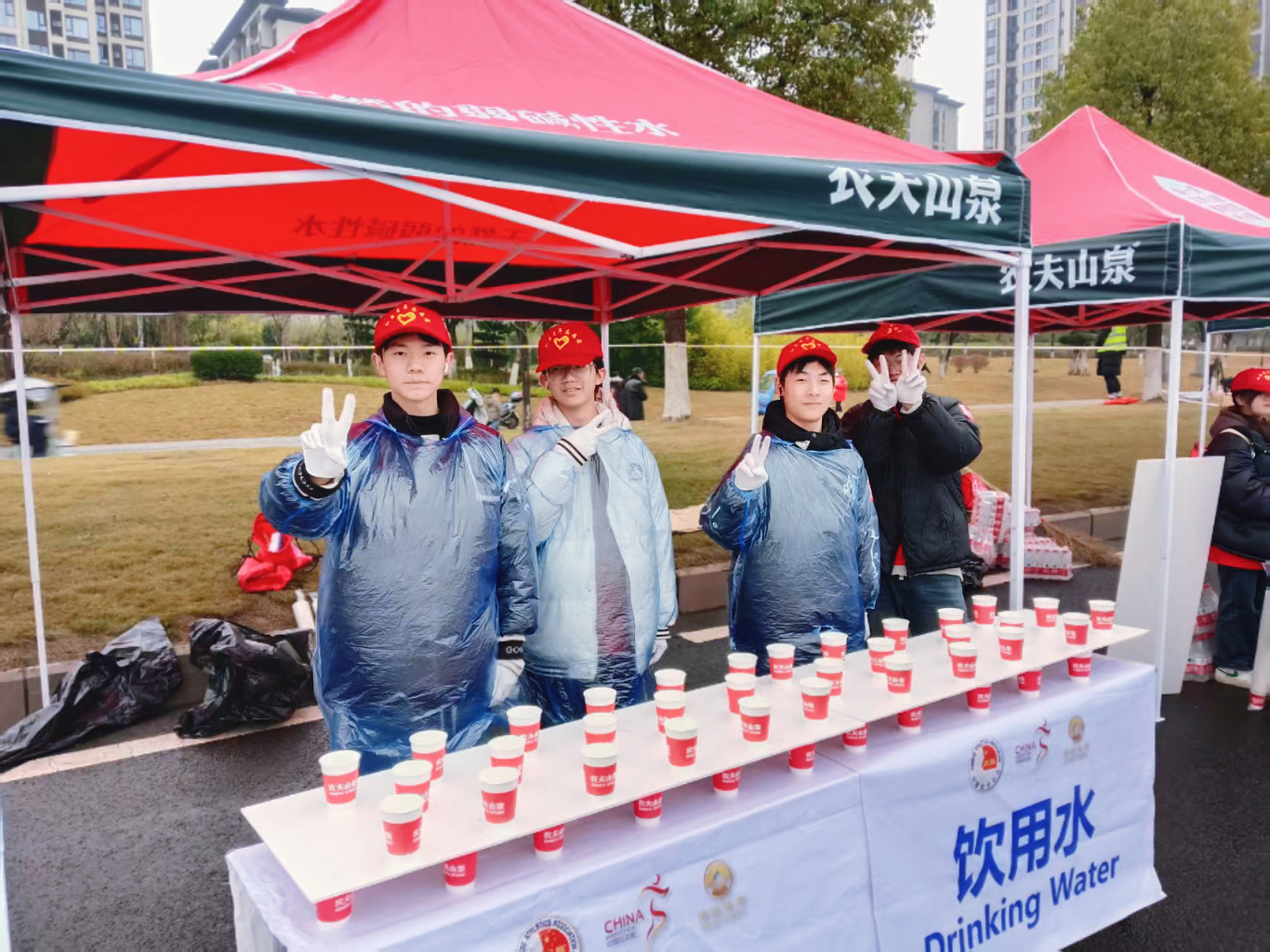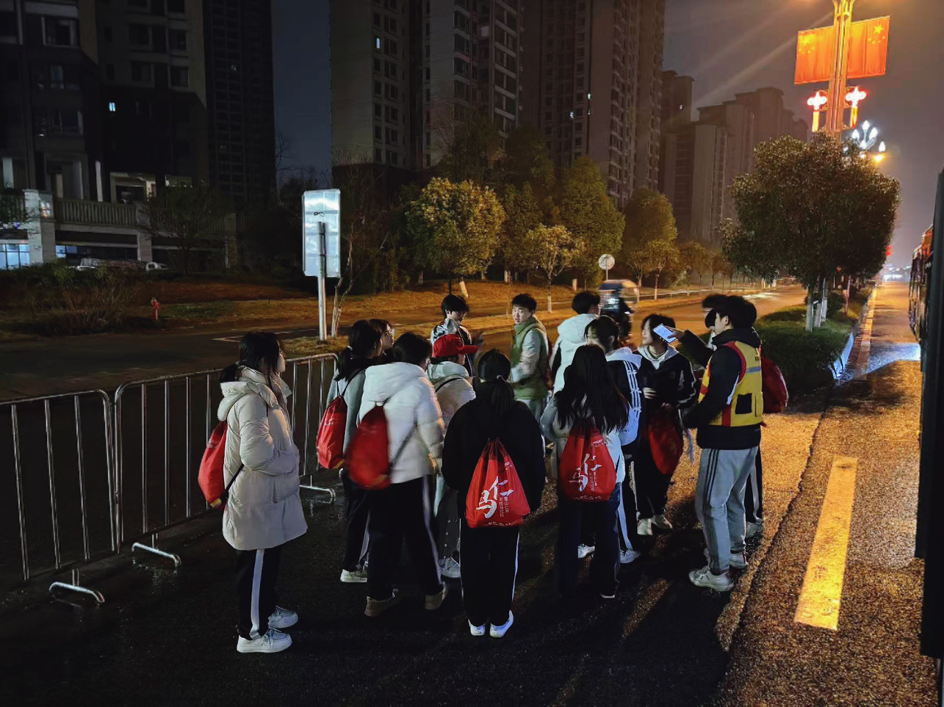 他们分工有序,团结合作,尽管天色昏暗,气温较低,但新科志愿者热情高涨,确保比赛顺利进行。