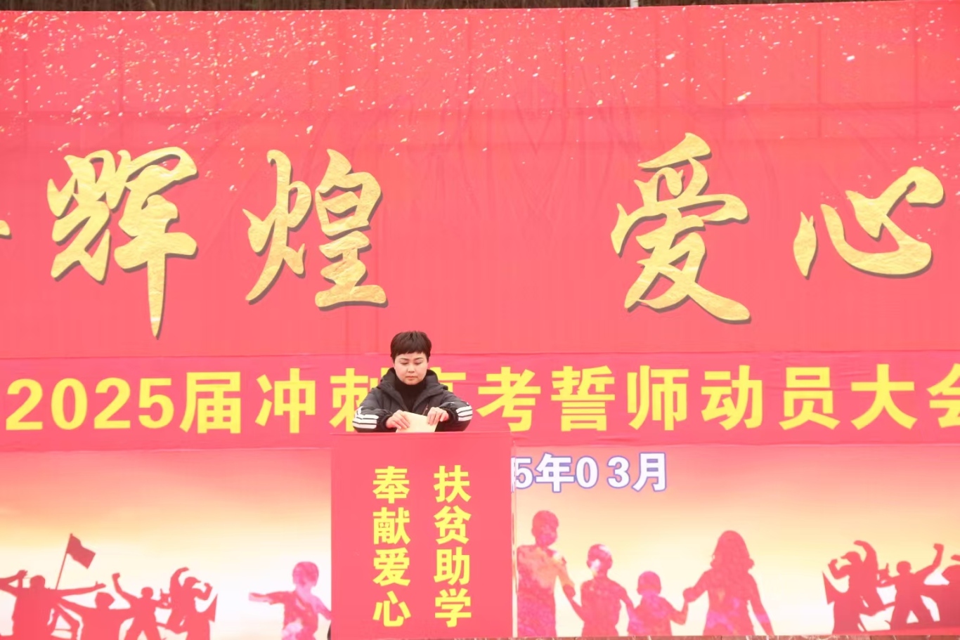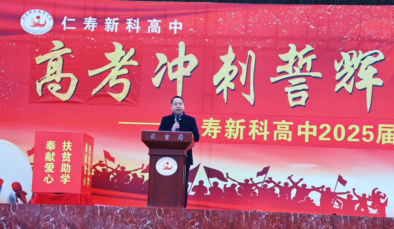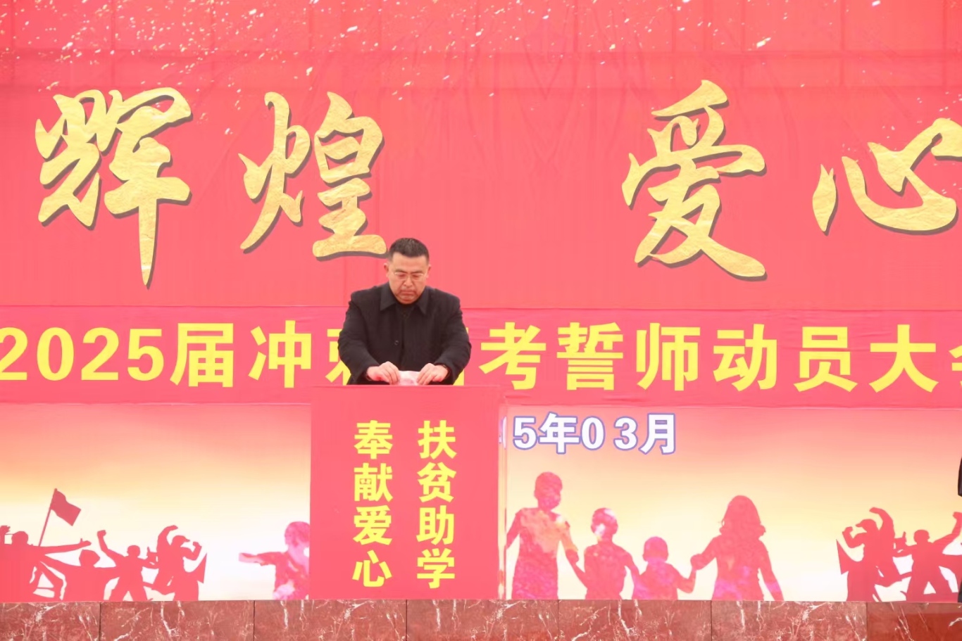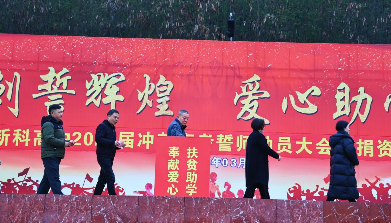 为进一步激发2025届毕业班学子冲刺高考的动力,极大调动学生的学习积极性;帮助家庭经济困难的学生顺利完成学业,弘扬雷锋精神和中华传统美德,播下慈善和感恩的种子,传承中华美德。2025年3月5日,新科高中在足球场隆重举行2025届冲刺高考百日誓师动员大会暨捐资助学活动。