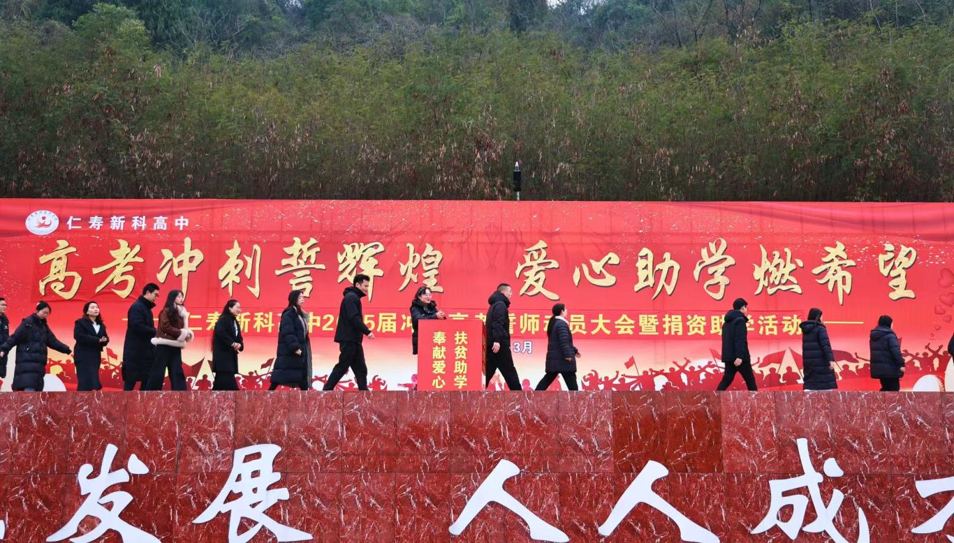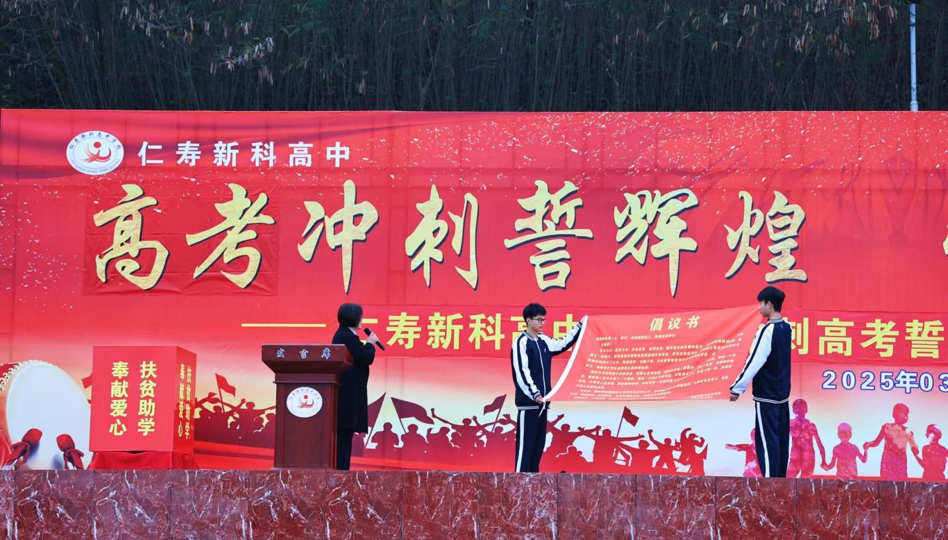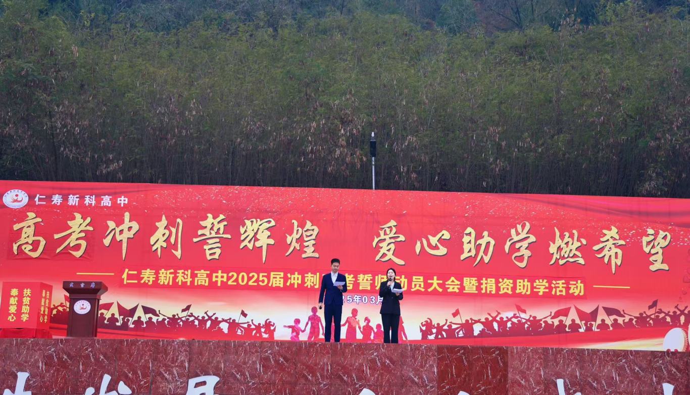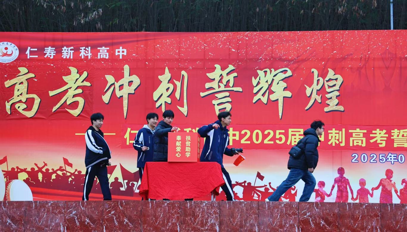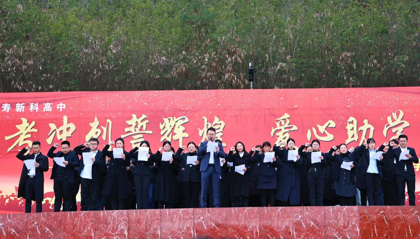为进一步激发2025届毕业班学子冲刺高考的动力,极大调动学生的学习积极性;帮助家庭经济困难的学生顺利完成学业,弘扬雷锋精神和中华传统美德,播下慈善和感恩的种子,传承中华美德。2025年3月5日,新科高中在足球场隆重举行2025届冲刺高考百日誓师动员大会暨捐资助学活动。