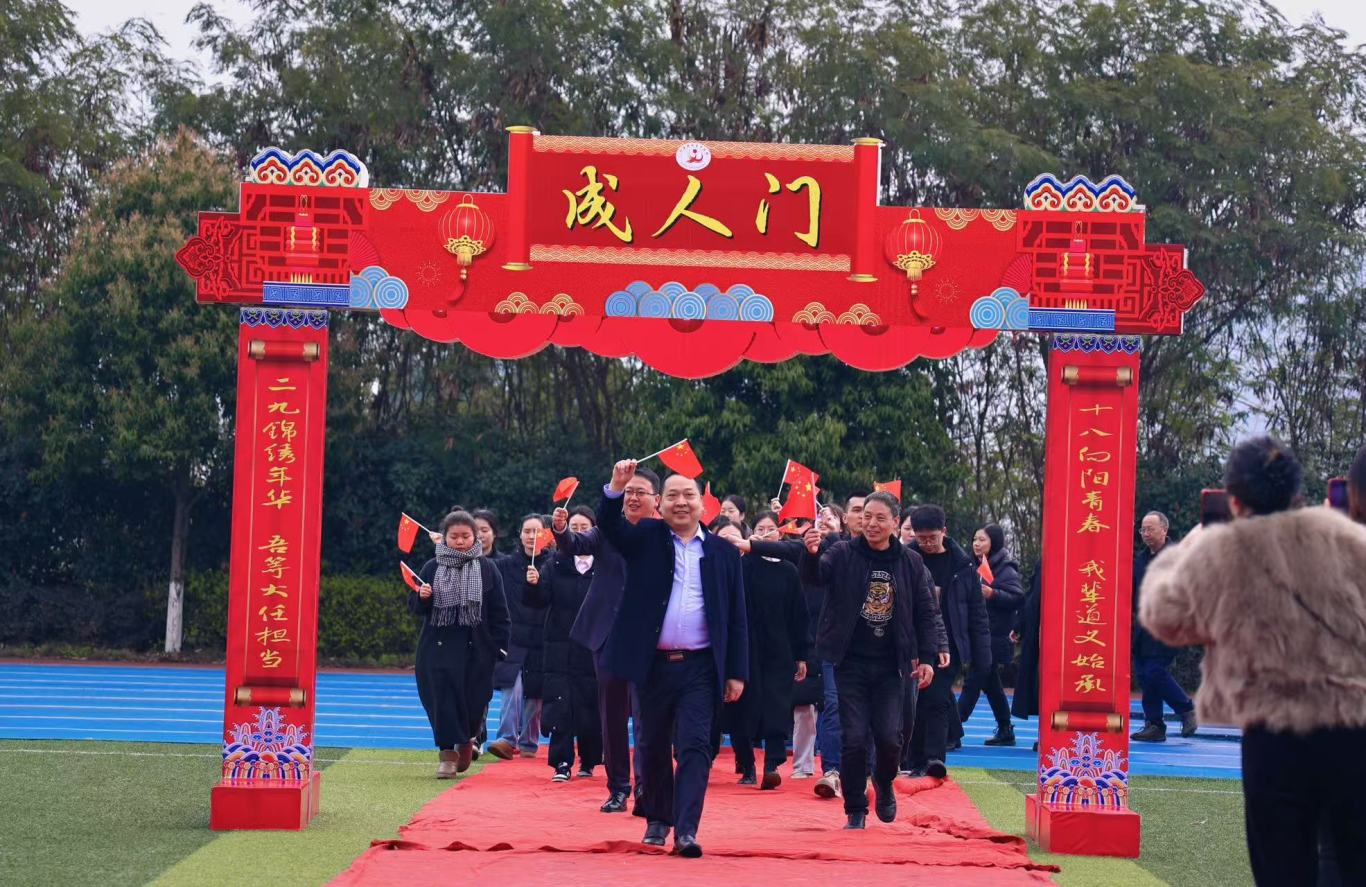 学校党支部书记、执行校长罗圣带领即将高考的将士们跨过成人门、奋斗门,迈向成功门。鼓励高三学子奋斗近100天,战胜自我,超越自我,全力以赴,冲刺高考,再创辉煌!