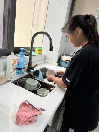 褶皱是自由的形状,但平整更是另一种飞翔; 劳动并非对抗杂乱,而是教人如何将散落的星子,串成发光的项链。家务劳动同样精彩,整理房间、打扫卫生、洗衣做饭.….这些看似平常的家务,却能锻炼孩子们的生活自理能力,一盆清水照见了成长的倒影——劳动教会我们的,从来不止洁净衣裳,更是如何将庸常日子,浣洗成发光的锦缎。