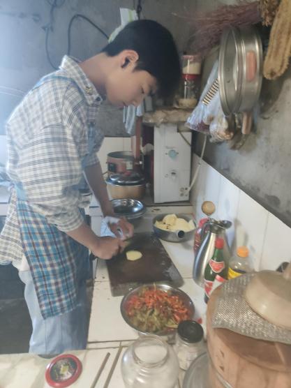 美食制作环节,孩子们变身“小厨师”,从挑选新鲜食材,到清洁、切配,再到烹饪出一道道美味佳肴,每一步都充满乐趣与挑战。一顿亲手包制的饺子,抑或是亲手做的美味佳肴,不仅是味蕾的满足,更是一次生动的劳动教育课。从手忙脚乱到渐入佳境,学生体会到了“一餐一饭当思来之不易”,从饭后的杂乱到洁净有序,让孩子们在烟火气中加深了对家庭与文化的理解,让劳动成为连接代际、传递温情的纽带。