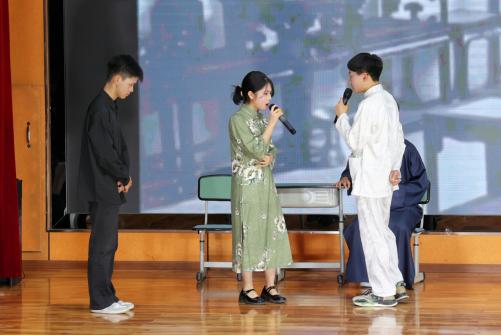 青年当以奋斗为碑、创新为帖,书写时代诗行。诗句承载回忆,更宣誓未来。由学校中层干部带来的诗朗诵《青年碑帖》拉开了五四文艺汇演的序幕。