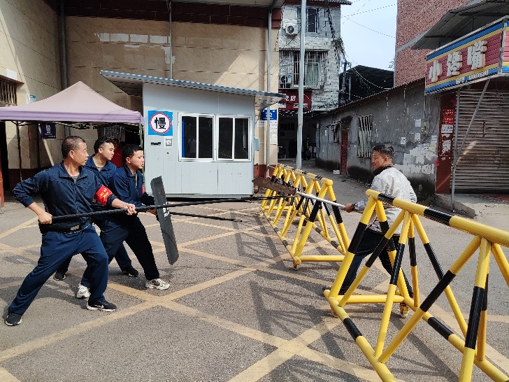 三角堡垒阵:适用于操场/广场开放式对抗(主力),双盾手120°夹角推进压缩空间,钢叉手精准锁脚,警棍手策应防突围,达成“进可攻、退可守”动态平衡,协同效率提升60%。