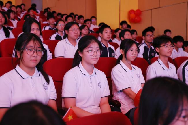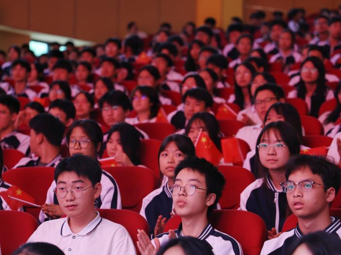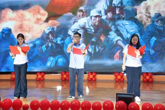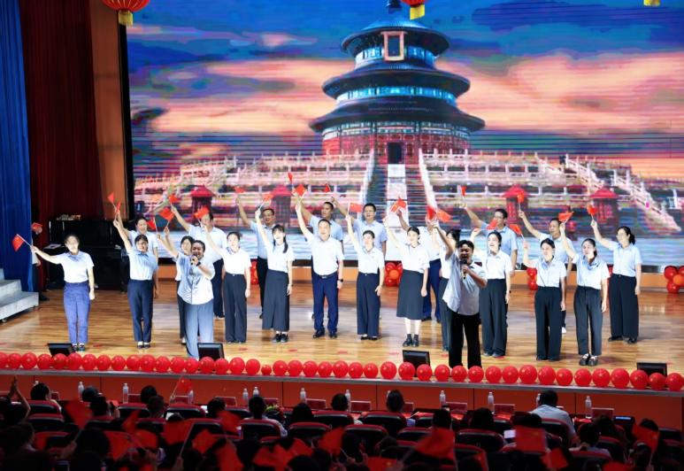罗圣书记指出,全校师生代表齐聚这里,共同庆祝我们伟大祖国的 76 周年华诞。76年的风雨兼程,76年的砥砺前行,我们与祖国一同成长。我们既是祖国巨变的见证者,更是未来辉煌的创造者。希望同学们以实际行动践行社会主义核心价值观,勤奋学习,增长才干,展现新时代青少年的责任与担当。