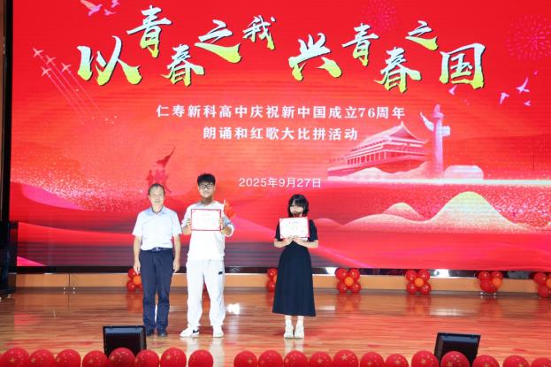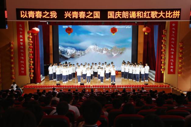 以青春之我 兴青春中国——仁寿新科高中举行国庆76周年诗歌朗诵和红歌大比拼