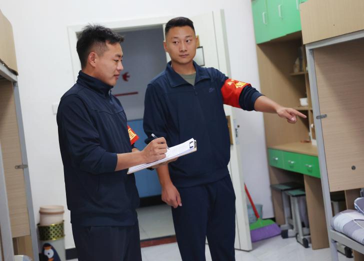 教员深入学生宿舍,不仅开展内务卫生检查,也要对学生生活习惯和自理能力进行指导。严格的标准,耐心的指导,帮助学生塑造爱清洁、讲秩序、懂自律的品格。