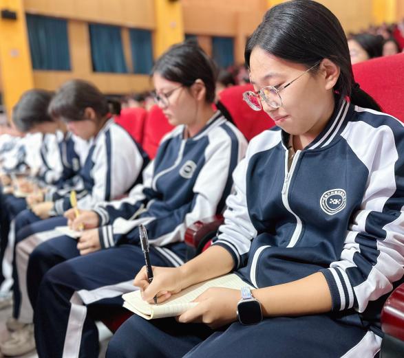 同学们全神贯注,认真聆听。他们一边仔细做笔记,一边频频点头认可,随着滕春主任的详细阐述及巧妙点拨,豁然开朗。许多女生表示,这不仅仅是一场知识的快递,更是一次心灵的启发,让自己在今后面对各种情况时,有了更多的底气和自信。