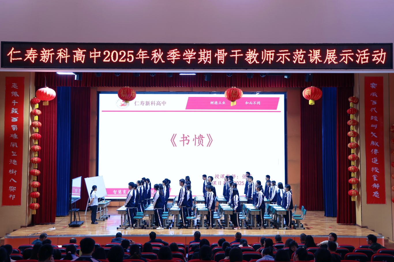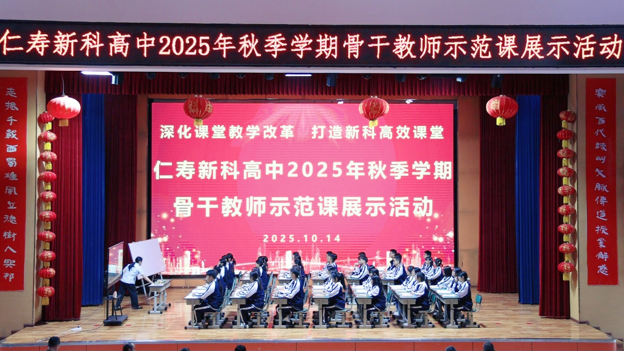 秋阳正好,教苑飘香。为期两天的仁寿新科高中2025年秋季学科骨干教师示范课活动于近日圆满落下帷幕。本次活动是我校深化教育教学改革、构建高质量教育体系的生动实践,通过骨干教师率先垂范,积极探索“三新”背景下的课堂转型路径,将“激情教学、高效课堂”的理念融入每一节课堂,激发教育内生动力,进一步提升新科高中教学质量。