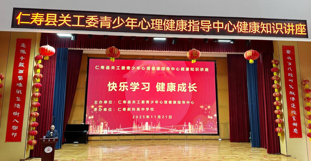 11月21日下午,新科师生齐聚学术报告厅,隆重举行由仁寿县关工委青少年心理健康指导中心主办,我校承办的“快乐学习 健康成长”心理健康知识专题讲座。