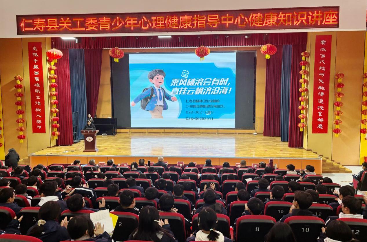 仁寿县关工委心理健康指导中心执行主任刘德元发表讲话。结合高中学生心理特点和成长需求,为同学们解锁情绪的“魔法秘籍”,引导大家向着心理健康标准迈进,拥抱阳光青春。