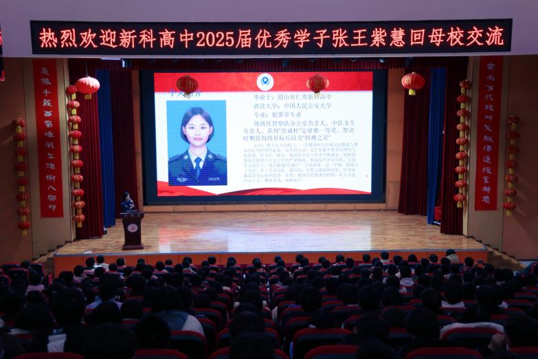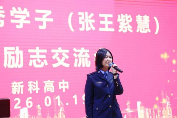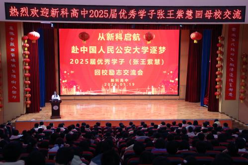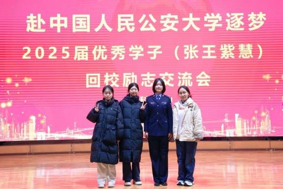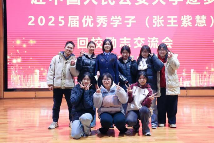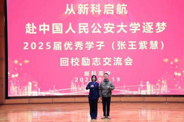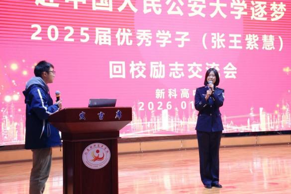 为充分发挥优秀校友的榜样引领作用,激发在校学子的学习热情与奋斗志向,我校于2026年1月19日下午成功举办了“警徽映初心 榜样引征途”优秀学子返校交流演讲会。活动特邀2025届优秀毕业生、现就读于中国人民公安大学的张王紫慧同学回到母校,与师生们分享成长经历,畅谈大学梦想。